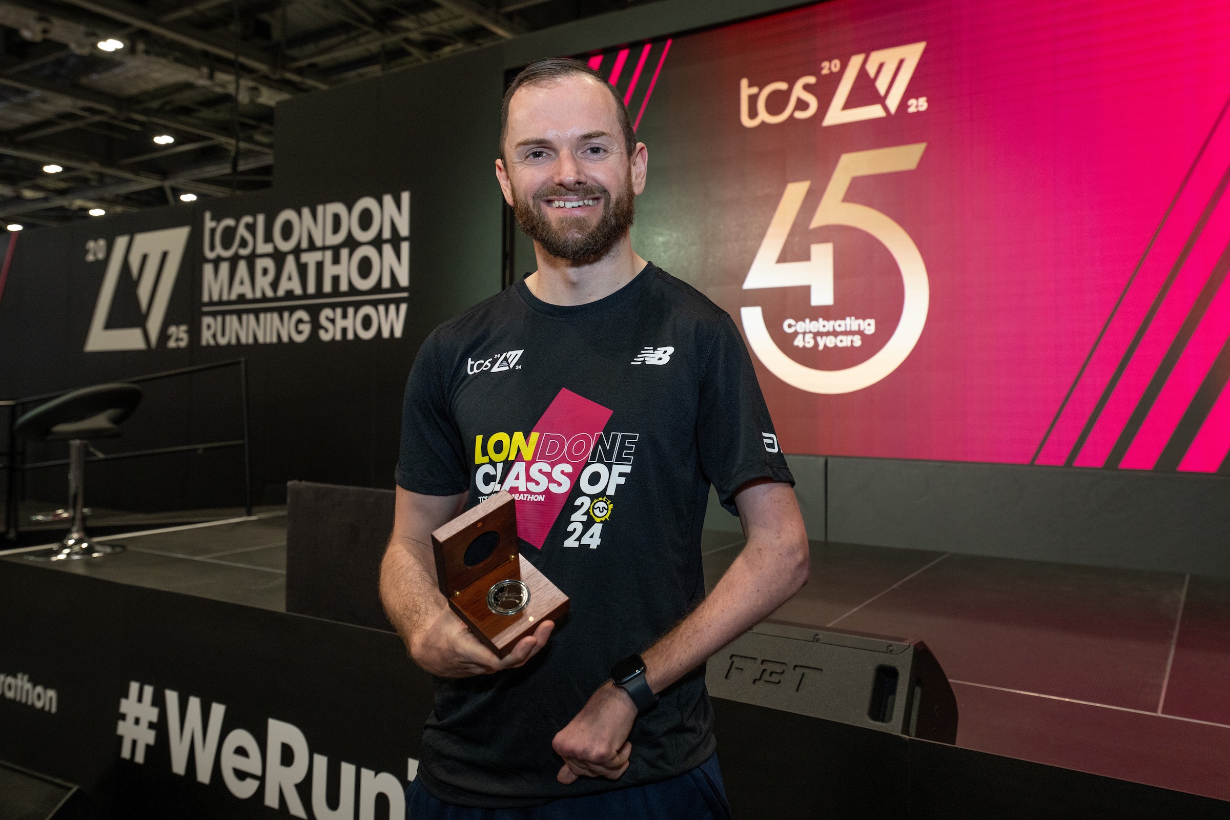 Caption: Anthony Bryan with his Spirit of the London Marathon Award at the TCS London Marathon Running Show